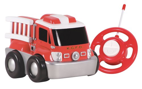 This truly is great for a child's first remote control car. The fire truck sounds are great! Not too loud and it really gets my grandson's attention. The two-button remote control is easy for him to operate and hold. Batteries easy to replace and last a really long time in both the car and the remote control. NO SPECIAL SCREWDRIVER NEEDED: Just a small phillips is all it takes. Highly recommended! We bought the police car, fire truck, construction loader and school bus. The soft body makes it safe for both child and furniture!